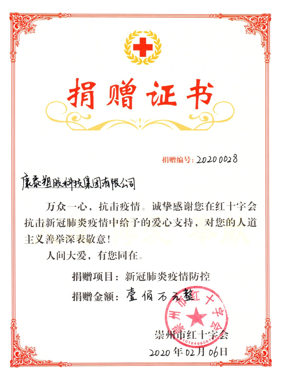 2021.07洪水無(wú)情 康泰有愛-康泰集團(tuán)鄭州子公司及員工、經(jīng)銷商捐款52萬(wàn)余元支援河南抗洪救災(zāi)近期,受極端暴雨影響,河南多地出現(xiàn)嚴(yán)重的洪水災(zāi)情,牽動(dòng)全國(guó)人民的心。為支持河南省防汛救災(zāi)工作,7月25日,康泰塑膠科技集團(tuán)(鄭州)有限公司通過(guò)新鄭市紅十字會(huì),向河南災(zāi)區(qū)捐款50萬(wàn)元,用于防汛救災(zāi)和災(zāi)后重建工作。圖為捐贈(zèng)證書同時(shí),在...閱讀人數(shù):10165 -